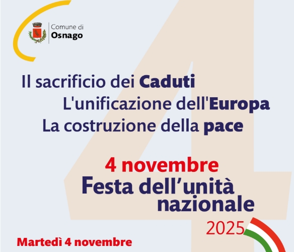 Martedì 4 novembre, in occasione della Festa dell’unità nazionale, a Osnago si terrà un momento dedicato al sacrifico dei