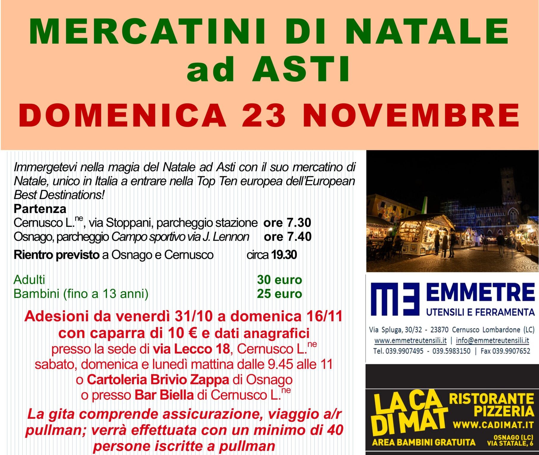 Anche quest’anno l’associazione I bagai di binari organizza la gita ai mercatini di Natale di Asti in pullman con
