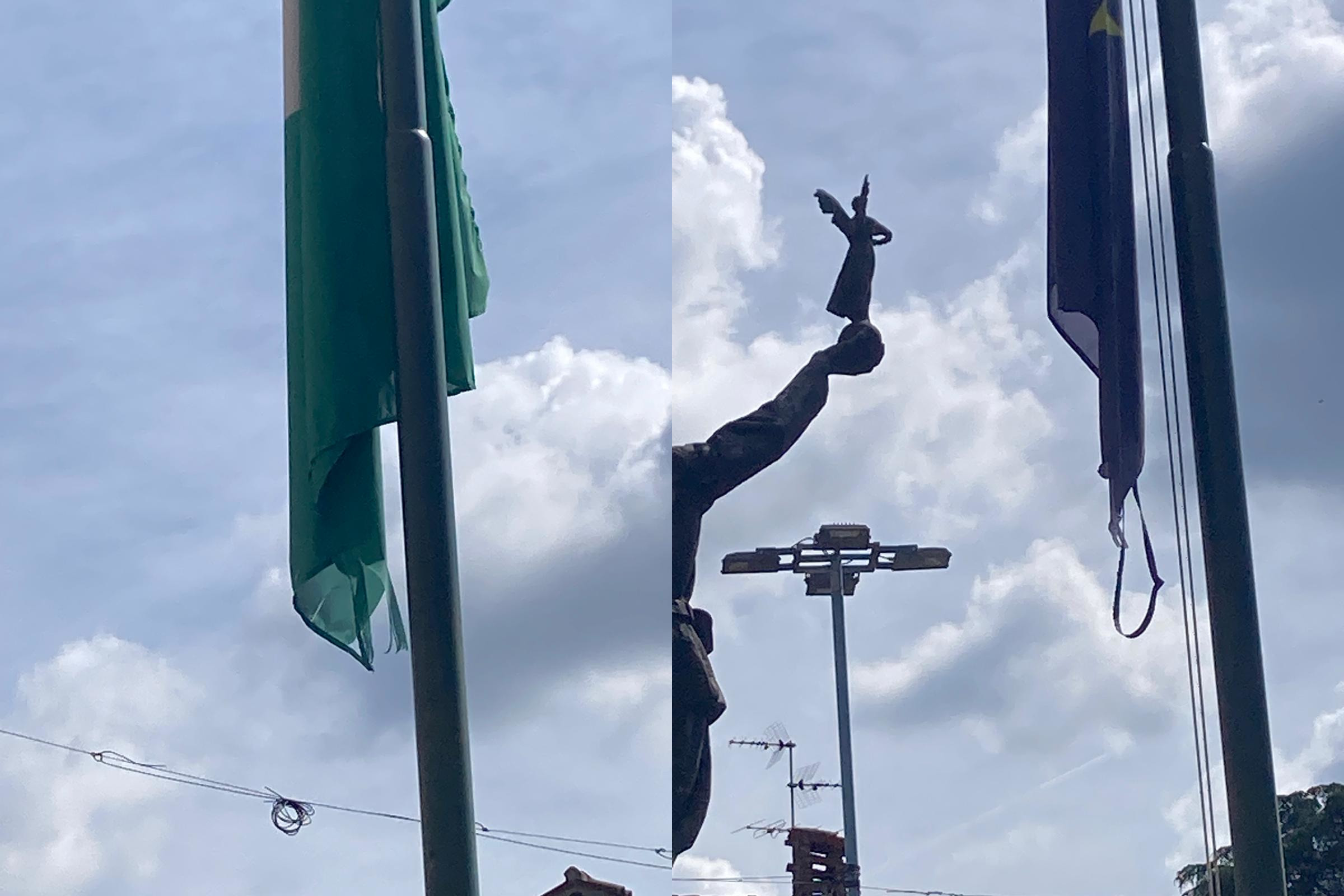 A seguito della mia precedente segnalazione, mi duole aggiungerne una ulteriore sullo stato della bandiera la monumento degli alpini
