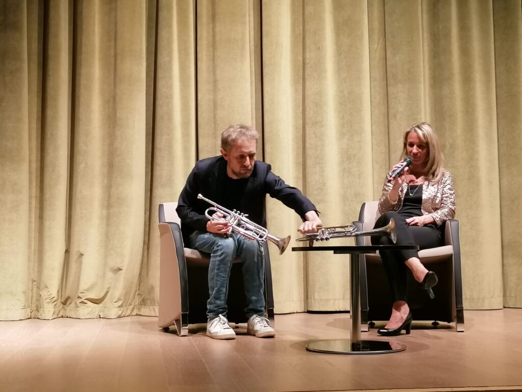 «Sono di Frosinone, ho 44 anni, ho frequentato il Liceo scientifico e, a 17 anni, ho scoperto la tromba come mezzo di espressione così mi sono iscritto al Conservatorio – ha esordito – Successivamente, dopo un anno di Ingegneria, sono andato a militare. Per dieci anni e mezzo sono stato la Prima tromba dell’Esercito a Roma ma desideravo qualcosa di più: il mio sogno nel cassetto era quello di suonare in orchestra così ho iniziato a fare concorsi per raggiungere il mio scopo».