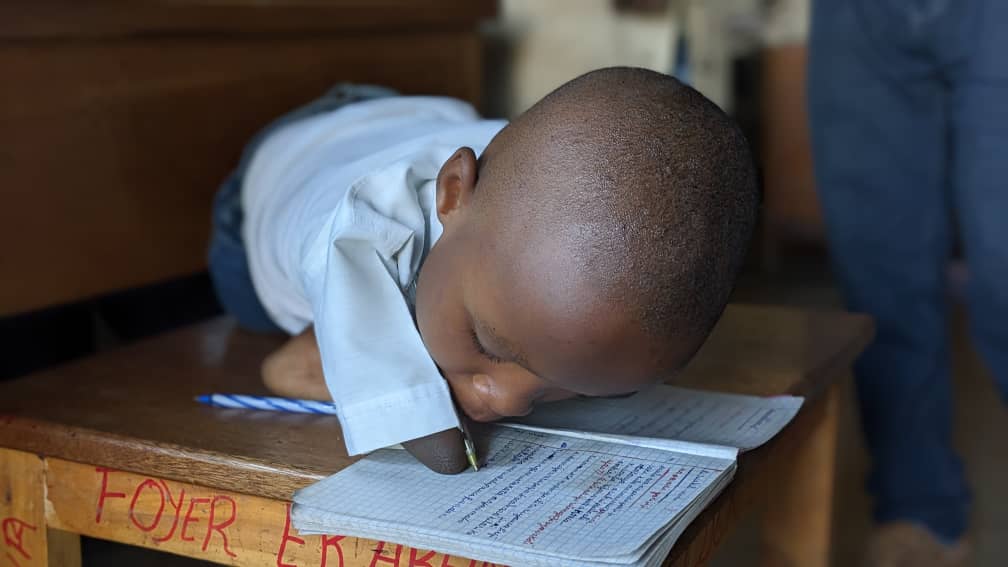 In occasione della Quaresima 2023 la parrocchia di Cernusco Lombardone aveva sostenuto con l’iniziativa Aggiungi un posto a tavola la realtà di Ek’abana a Bukavu, dove opera Natalina Isella, nello specifico la classe prima elementare del Foyer che ospitava anche due ragazzine disabili tra cui Sensation Brachial, senza braccia e con una gamba.