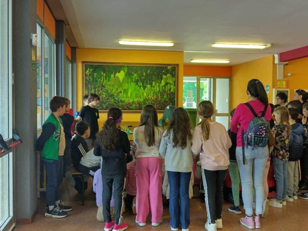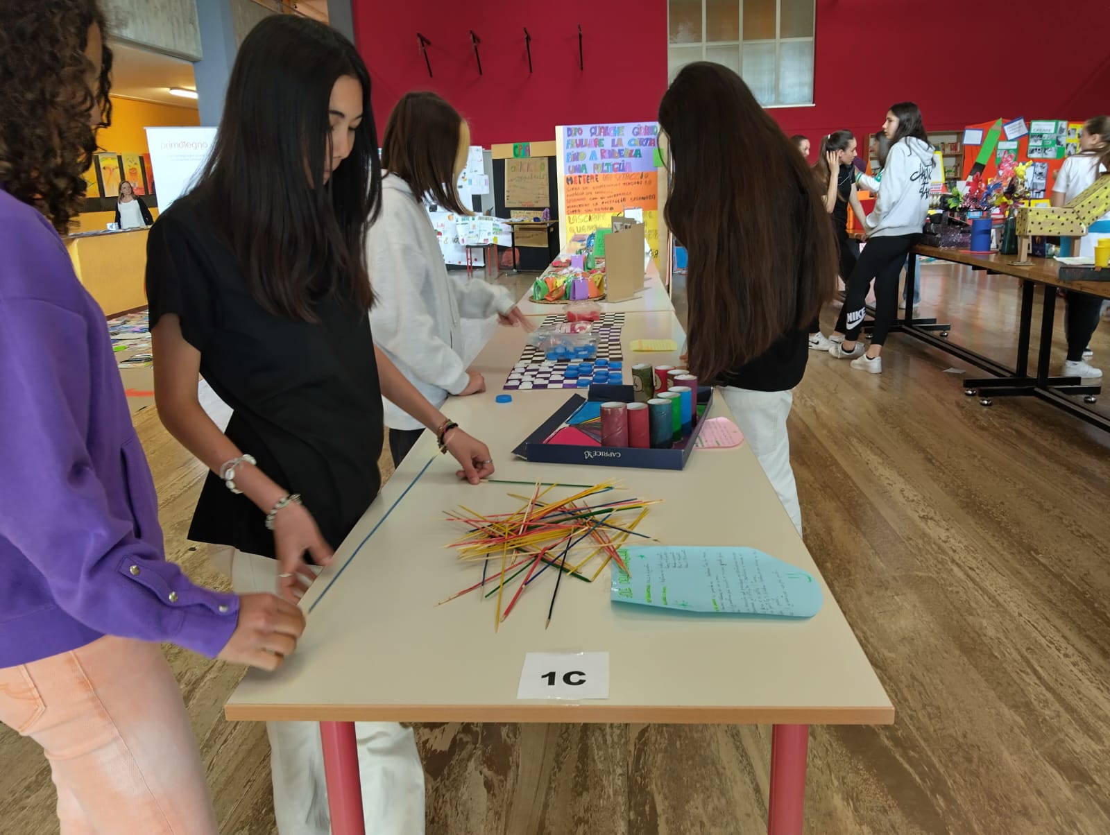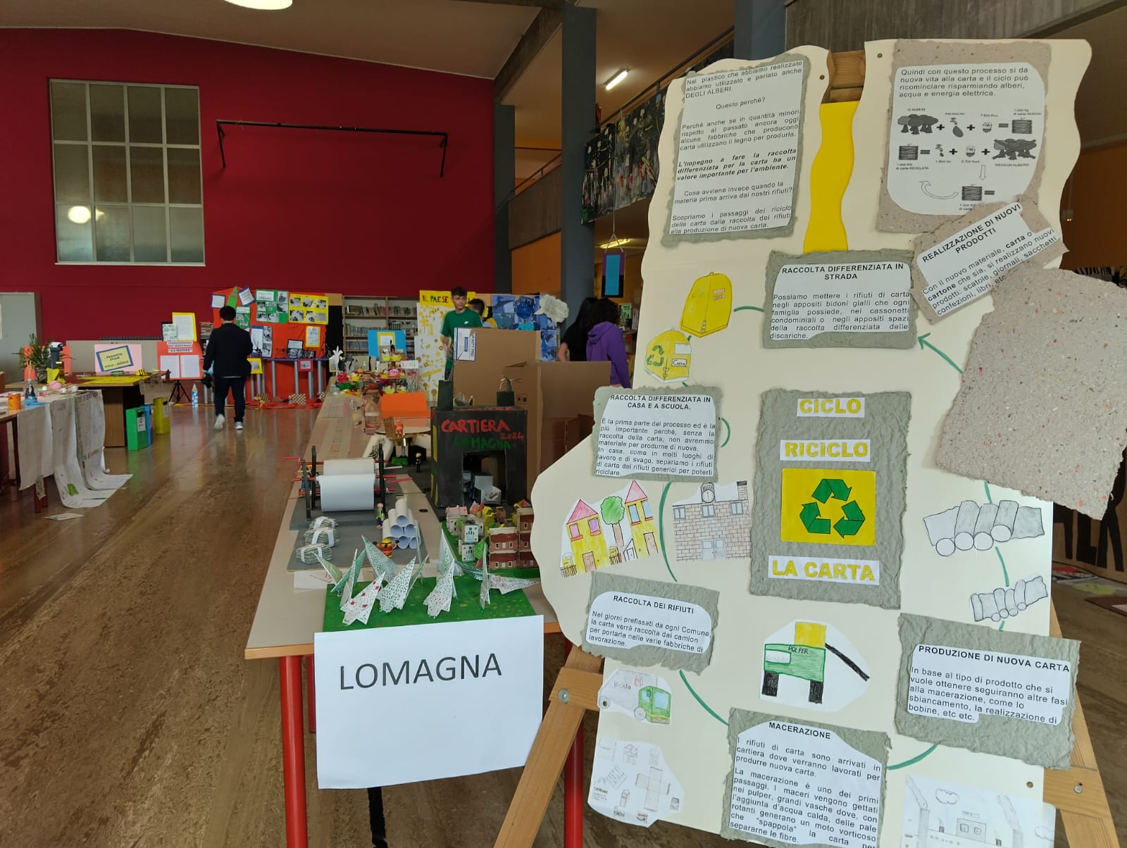 Durante la giornata di venerdì a varcare le soglie dell’istituto sono state le quattro scuole primarie: Osnago, Lomagna, Cernusco e Montevecchia e la scuola dell’infanzia di Montevecchia. Tutti gli alunni hanno potuto partecipare ad un giro conoscitivo organizzato in sei zone ognuna delle quali caratterizzata da diversi lavori, progetti e iniziative. All’interno della palestrina si trova il cuore della mostra, dove sono stati esposti i lavori di tutte le scuole che hanno aderito al progetto e dove molti studenti della secondaria, a turno, hanno spiegato ai visitatori il significato e il contenuto degli elaborati.