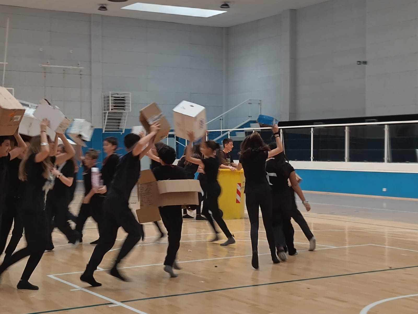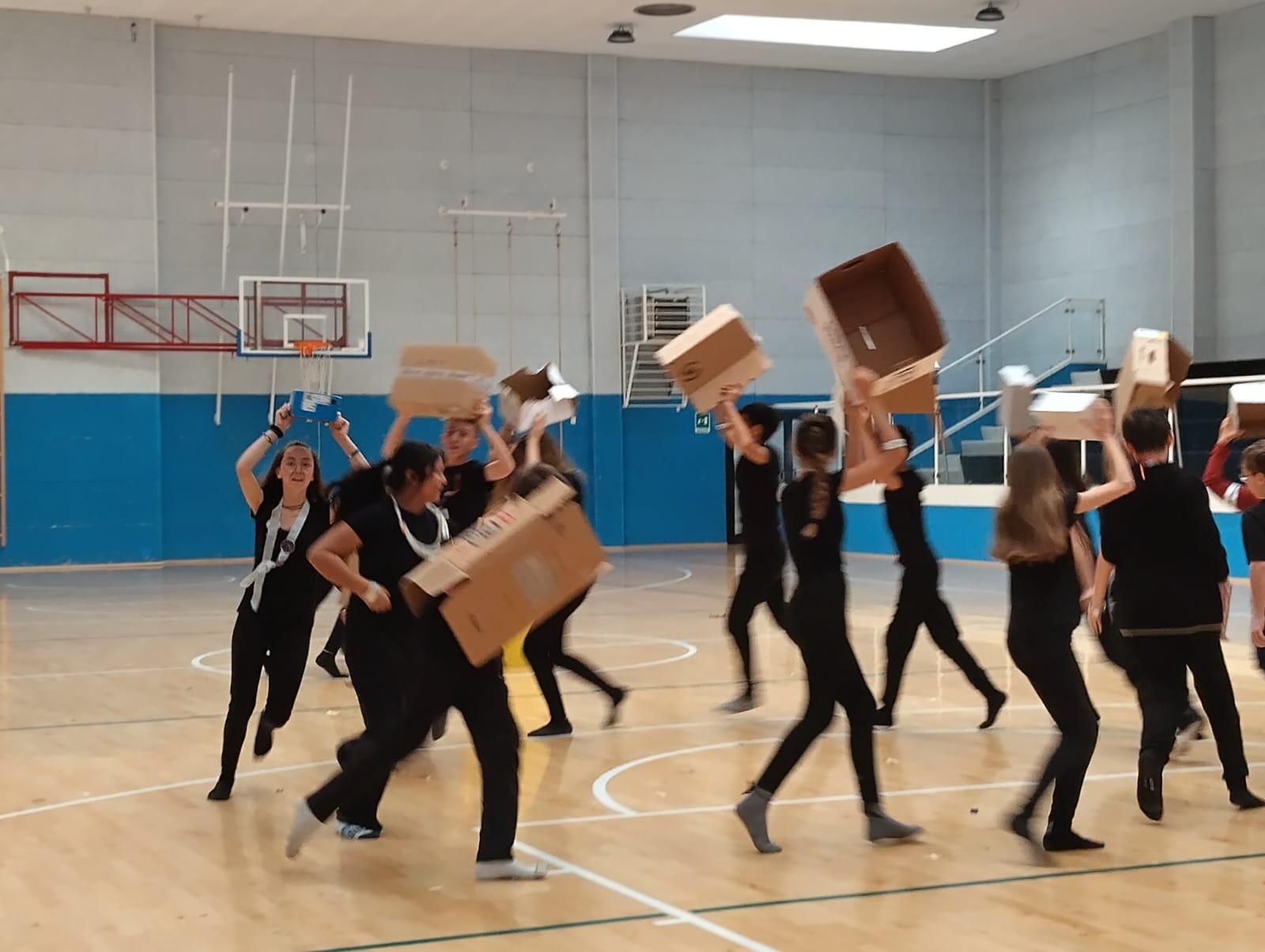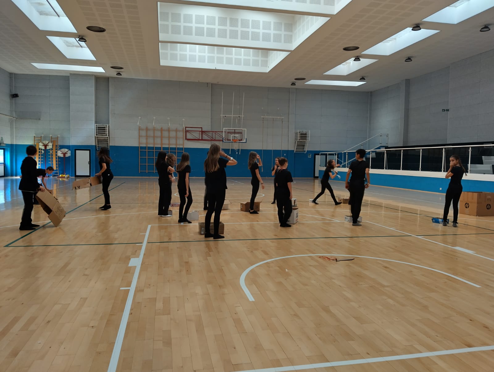 In palestra è stato possibile assistere ad un mini-musical realizzato dai ragazzi delle 2^F, che insieme alla loro docente di lettere Valentina Virgilio hanno lavorato su un testo di Italo Calvino. Le parole dell’autore sono state trasformate in una danza tra ciò che è, ciò che è possibile, ciò che è desiderio o immaginazione.