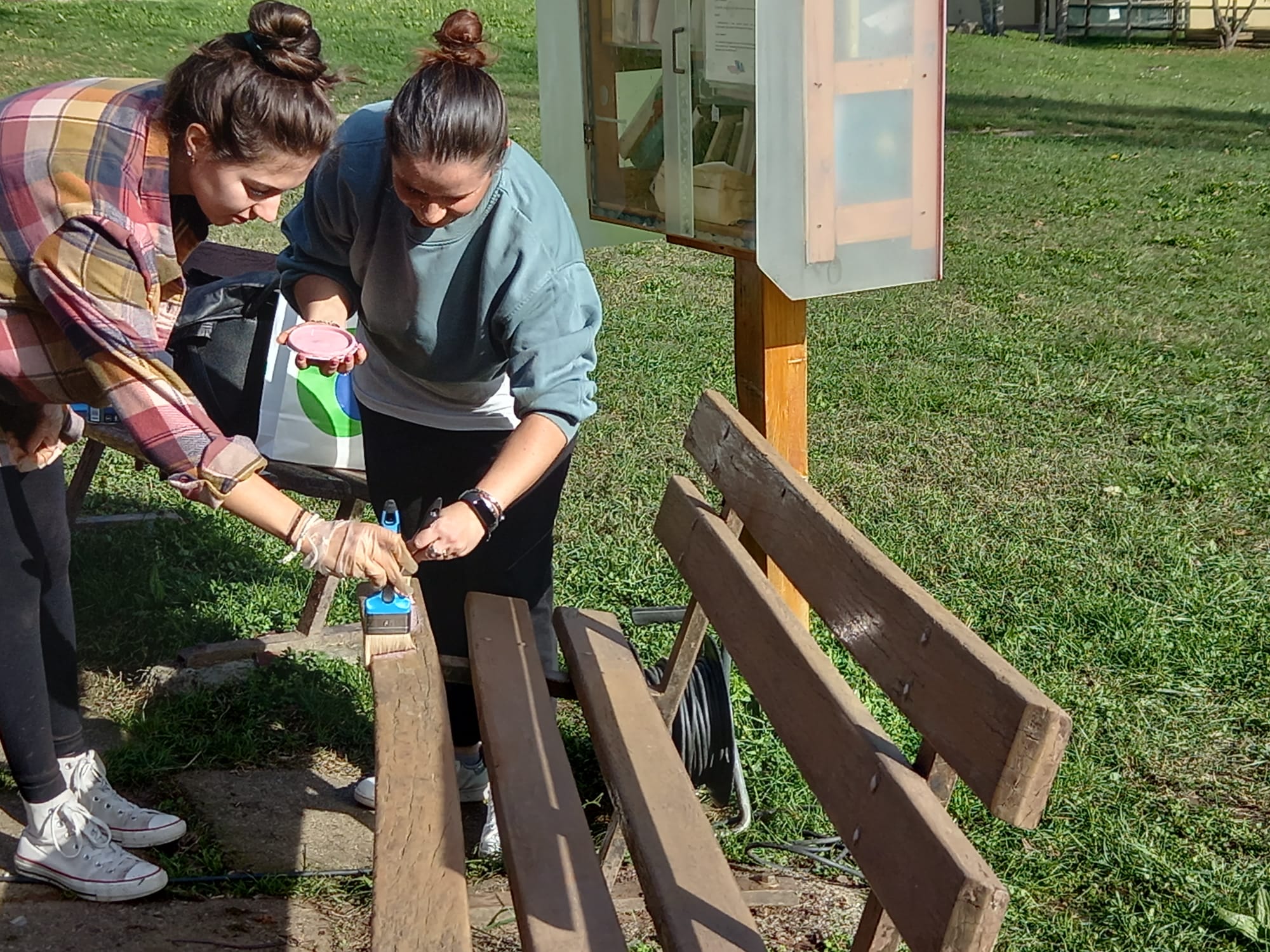 Dopo un lungo lavoro di levigatura della panchina, si è proceduto alla verniciatura della stessa con la collaborazione di Marco Pennati, presidente della Consulta Giovani, che ha appoggiato l’iniziativa proposta dall’assessore Nicoletta Palmieri (assente per impegni) e dai consiglieri Francesca Maria Colombo, Sara Manzella, Claudia Zamarian e Carmela Palella. A contribuire alla verniciatura anche altre montevecchine che hanno aderito con piacere alla bella iniziativa.