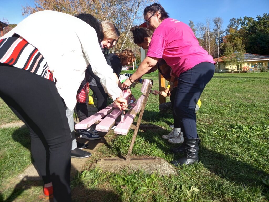 Dopo un lungo lavoro di levigatura della panchina, si è proceduto alla verniciatura della stessa con la collaborazione di Marco Pennati, presidente della Consulta Giovani, che ha appoggiato l’iniziativa proposta dall’assessore Nicoletta Palmieri (assente per impegni) e dai consiglieri Francesca Maria Colombo, Sara Manzella, Claudia Zamarian e Carmela Palella. A contribuire alla verniciatura anche altre montevecchine che hanno aderito con piacere alla bella iniziativa.