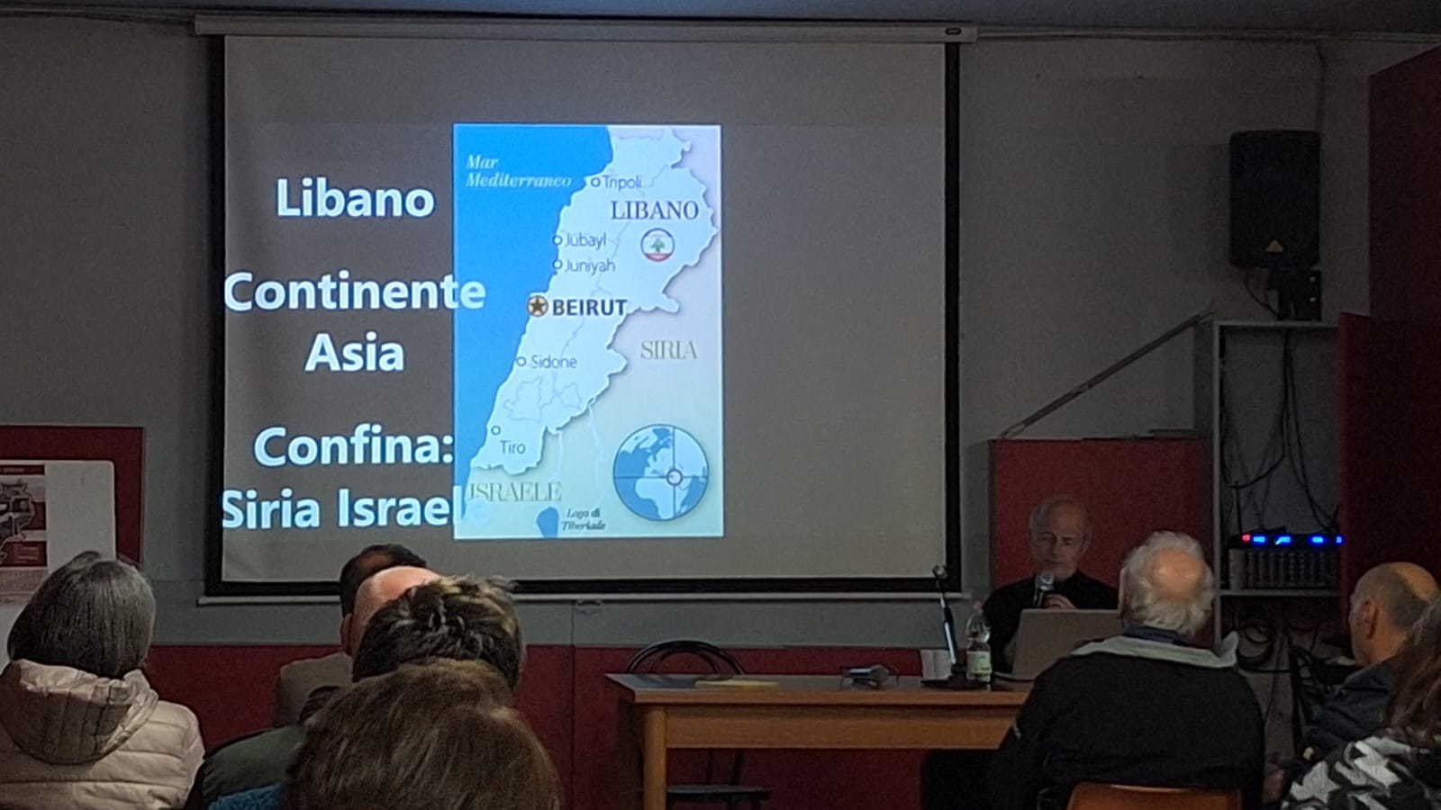 Dusi ha sottolineato come l’incontro con padre Puccini si inserisce nella tradizione del Centro Lazzati riguardante il mese di ottobre, mese missionario, in cui viene organizzata sempre una serata durante la quale dare voce a persone che vivono in paesi del mondo sui quali spesso non si concentra l’attenzione dei più ma è importante informarsi. Dusi ha introdotto l’argomento della serata, ovvero la situazione del Libano, paese composto per il 50% da profughi che hanno bisogno di tutto.
